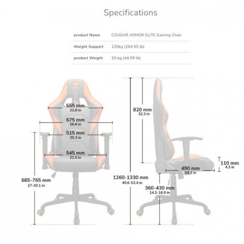 - Вышитый логотип. ARMOR Elite имеет знак настоящего геймера: в отличие от печатных логотипов других брендов COUGAR вышил свой знак, чтобы он не портился и не изнашивался в течение долгого времени.