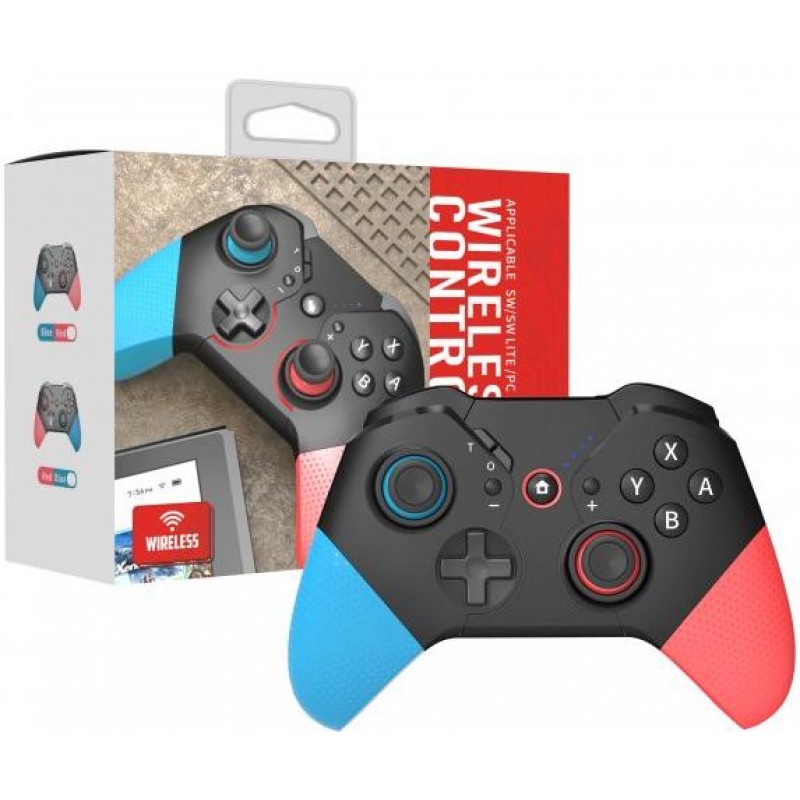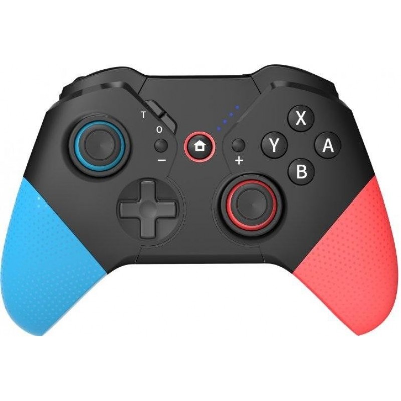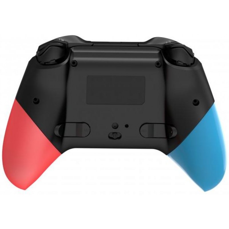 Дизайн устройства отображает динамику и энергию игрового мира. Его черный корпус дополнен акцентами синего и красного цвета, что придает ему яркость и выразительность. Эргономичная форма геймпада обеспечивает удобный восторг и комфортную игру даже в течение длительных сеансов.