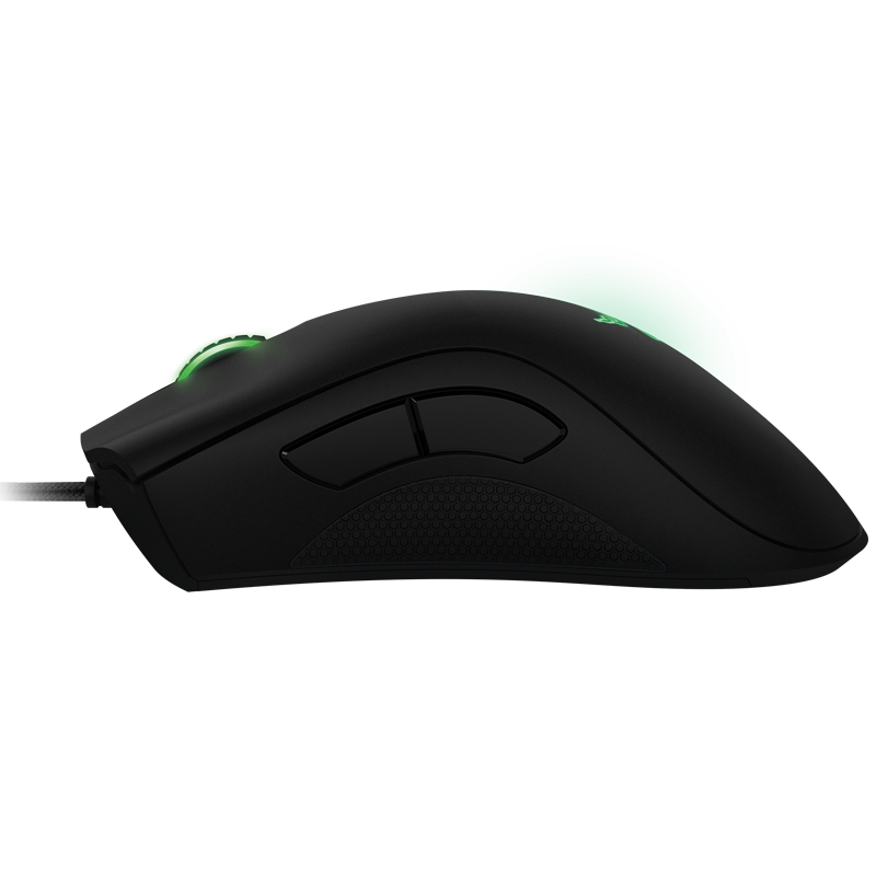 Razer DeathAdder пользуется большой популярностью у профессиональных геймеров, больше всего они ценят удобство конструкции и удачное расположение кнопок. В последней модификации мы добавили текстурные резиновые накладки по бокам — они обеспечат стабильный контроль и надёжный захват при любом стиле игры: и тем, кто постоянно поднимает мышь с поверхности, и тем, кто делает внезапные резкие движения мышью.