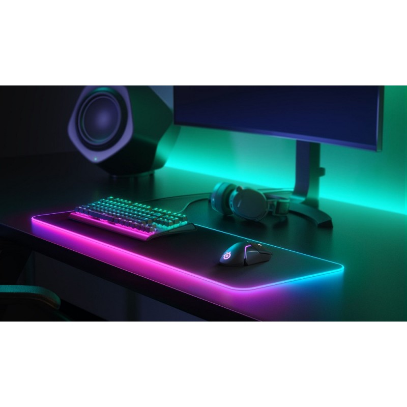SteelSeries QcK Prism изготовлен из той же микроволоконной ткани, что и прочие модели серии QcK. Его отличительной особенностью и, пожалуй, одним из главных преимуществ, является яркое RGB-свечение, которое отлично дополнит вашу игровую атмосферу.