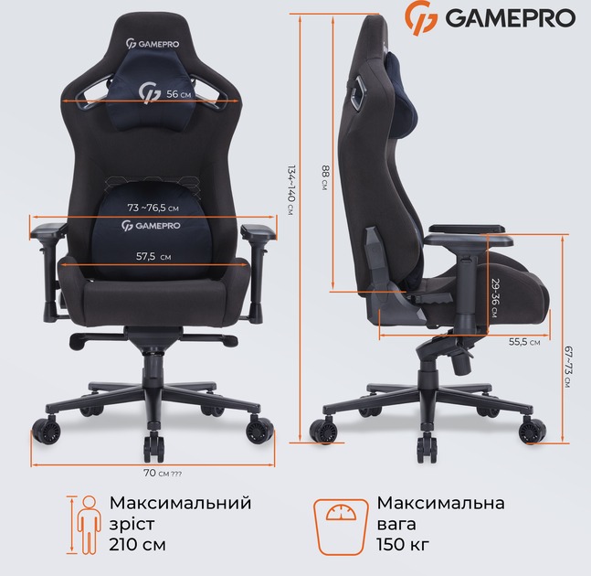 Игровое кресло GamePro GC900B Size XL Fabric Black