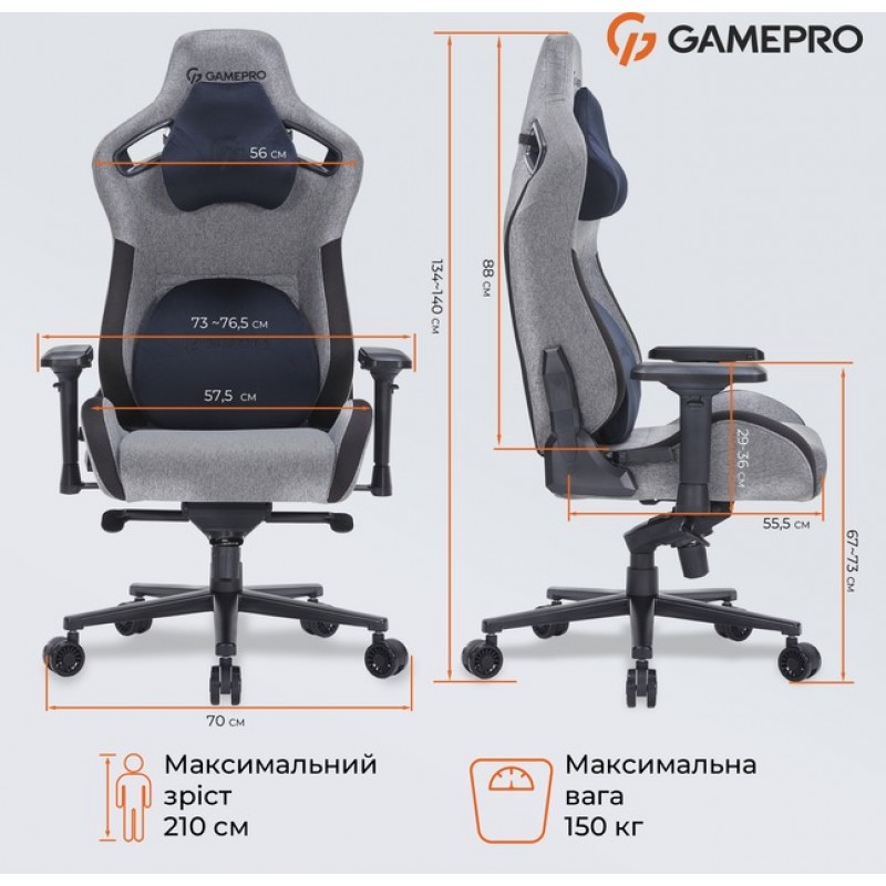 Игровое кресло GamePro GC900DG Size XL Fabric Dark Grey