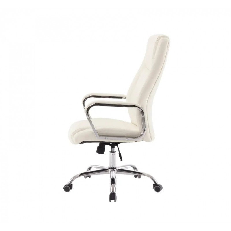 Дизайн. Элегантная классика - вот как можно охарактеризовать это кресло. Силуэт достаточно сдержанный, но благодаря удачному сочетанию линий прошивки, кожи и хромированного металла модель выглядит роскошно и уютно. Сидение и спинка украшены перетяжками прошивки, которые вместе с толстым слоем наполнителя формируют удобное посадочное место. Блестящие металлические детали гармонично обрамляют обивку и только подчеркивают красоту кресла. Светлая экокожа отлично дополнит интерьер женского кабинета или кабинет со светлым или черным деревом.