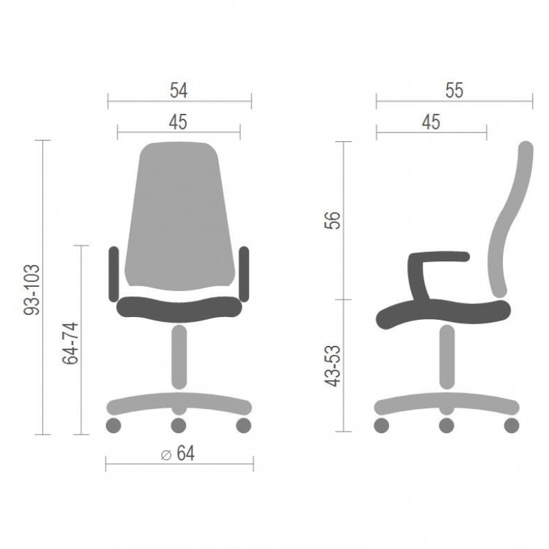 Высота подлокотников: 64-74 см