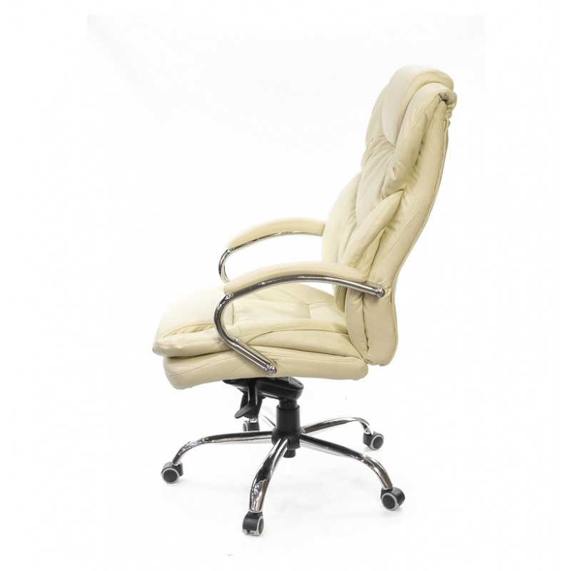 Крестовина. Крестовина в данной модели также из хромированного металла. Покрытие прочное, рассчитано на большие нагрузки, на нем не остаются следы от обуви или мелкие царапины в процессе эксплуатации. Металлическая крестовина достаточно прочная и рассчитана на рабочий вес до 120 кг. Роликовые опоры, которые обеспечивают креслу необходимую мобильность, оснащены хромированными накладками в стилистике модели. Кресло оснащено универсальными прорезиненными роликами, которые подойдут для всех типов напольных покрытий.