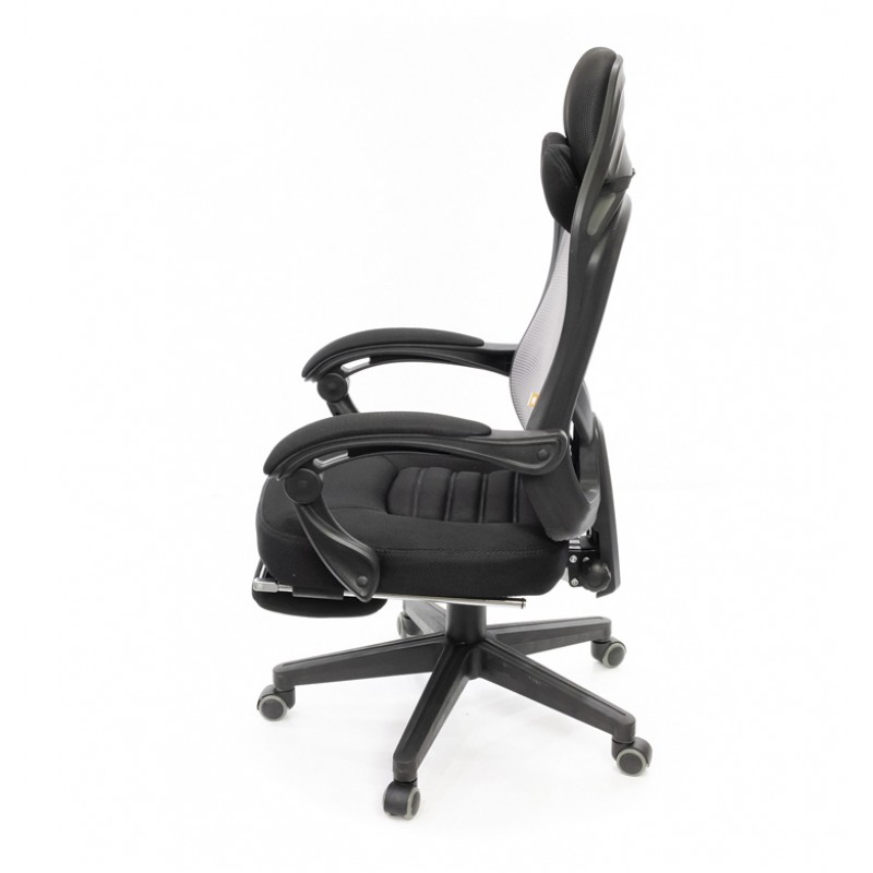 Кресло АКЛАС Мердок PL RL Серый (Серый/Черный) - это креативное офисное кресло в урбанистическом стиле. Популярность в своем сегменте оно заслужило за нетривиальную внешность и высокое качество. Классный "воздушный" дизайн, эргономичная посадка, качественные материалы и современные механизмы удовлетворят самого требовательного покупателя. Дизайн. Кресло имеет стильную внешность, благодаря которой кресло точно не останется незамеченным и станет настоящим украшением вашего дома или офиса. Высокая фигурная спинка с сетчатой вставкой в центральной части спинки, удобная выдвижная подставка для ног - все эти детали создают яркий, неповторимый образ современного, комфортного и стильного офисного кресла. Обивка. В качестве основного обивочного материала для спинки выбрана нейлоновая сетка, натянутая на прочный пластиковый каркас, с которой вы будете комфортно себя чувствовать даже в самый жаркий день благодаря ее "дышащими" свойствами. Этот материал отлично справляется с интенсивной нагрузкой и долго сохраняет свои свойства и привлекательный внешний вид, благодаря своей эластичности, повышенной воздухопроницаемости, прочности и износостойкости. В сиденье и подголовнике использована более плотная сотовая ткань, в которую вшита дополнительная подкладка для увеличения плотности и износостойкости. Механизмы. В данной модели установлен современный механизм релакс. Он дает возможность менять и фиксировать угол наклона спинки в любом удобном для вас положении. Откинув кресло глубоко назад, почти горизонтально относительно пола, вы сможете удобно устроиться и отдохнуть, сделав небольшой перерыв между важными делами. Приведя в действие режим качания, вы сможете сделать минуты отдыха еще более приятными. Кресло легко подстраивается под вес пользователя специальным винтом и регулируется по высоте с помощью газлифта. Подлокотники. Подлокотники изготовлены из толстостенного пластика черного цвета. На широких рабочих поверхностях установлены мягкие накладки - вашим рукам будет обеспечена надежная и комфортная опора. Крестовина. Цельнолитая крестовина изготовлена из прочного толстостенного пластика с внутренними жесткими ребрами, что позволит ей выдерживать нагрузку до 120 кг. Прорезиненные роликовые опоры обеспечивают креслу необходимую мобильность и подойдут для всех типов напольных покрытий. Особенности. Это - современная модель, созданная для максимального удобства. Удобная выдвижная подставка под ноги позволяет превратить кресло в удобное кресло-лежанку. Пластиковая пластина в поясничной зоне регулируется по высоте. Сиденье имеет углубление для более эргономичной посадки. Это позволит сохранить правильную осанку и хорошее самочувствие, как за игрой, так и во время работы или отдыха. Благодаря отличному качеству, стильному дизайну и привлекательной цене, кресло заслуженно занимает ведущее место в линейке офисных кресел с сеткой.
