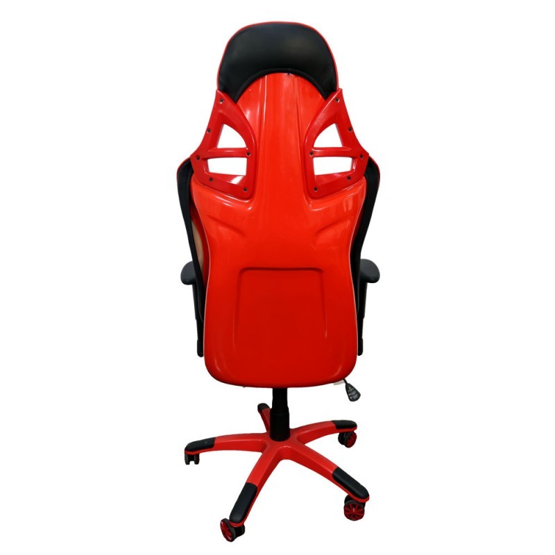Стекловолоконное сиденье, покрытое глянцевой эмалью, которое используется в гоночных автомобилях, водрузили на основание игрового кресла.