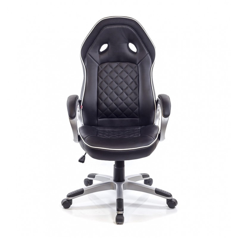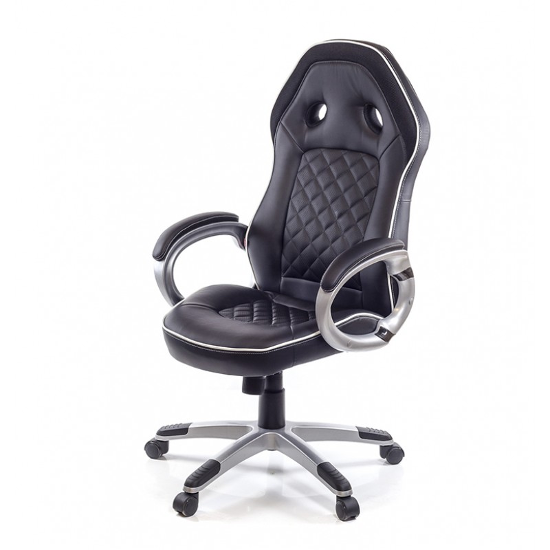 Дизайн. Внешний вид кресла стильный и современный. Оригинальная форма спинки с отверстиями, присущая "геймерским креслам" отлично сочетается с ромбовидной прошивкой. Прошивка - это не только элемент декора, она также выполняет легкую массажную функцию. Такая модель будет уместной и в комнате подростка, и в офисе, и в домашнем рабочем уголке.