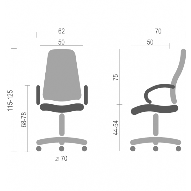 Крестовина. Цельнолитая крестовина серебристого цвета изготовлена из прочного толстостенного пластика. Отсутствие сварных швов и внутренних ребер жесткости позволяют ей выдерживать нагрузку до 120 кг. Черные пластиковые накладки-протекторы на крестовине предотвращают соскальзывание ног и защищают поверхность от царапин и повреждений. Пластиковые ролики обеспечивают креслу необходимую мобильность и подойдут для мягкого типа покрытия пола. Колесики, при необходимости, можно заменить на прорезиненные, которые подходят для твердых покрытий, таких как паркет или ламинат.