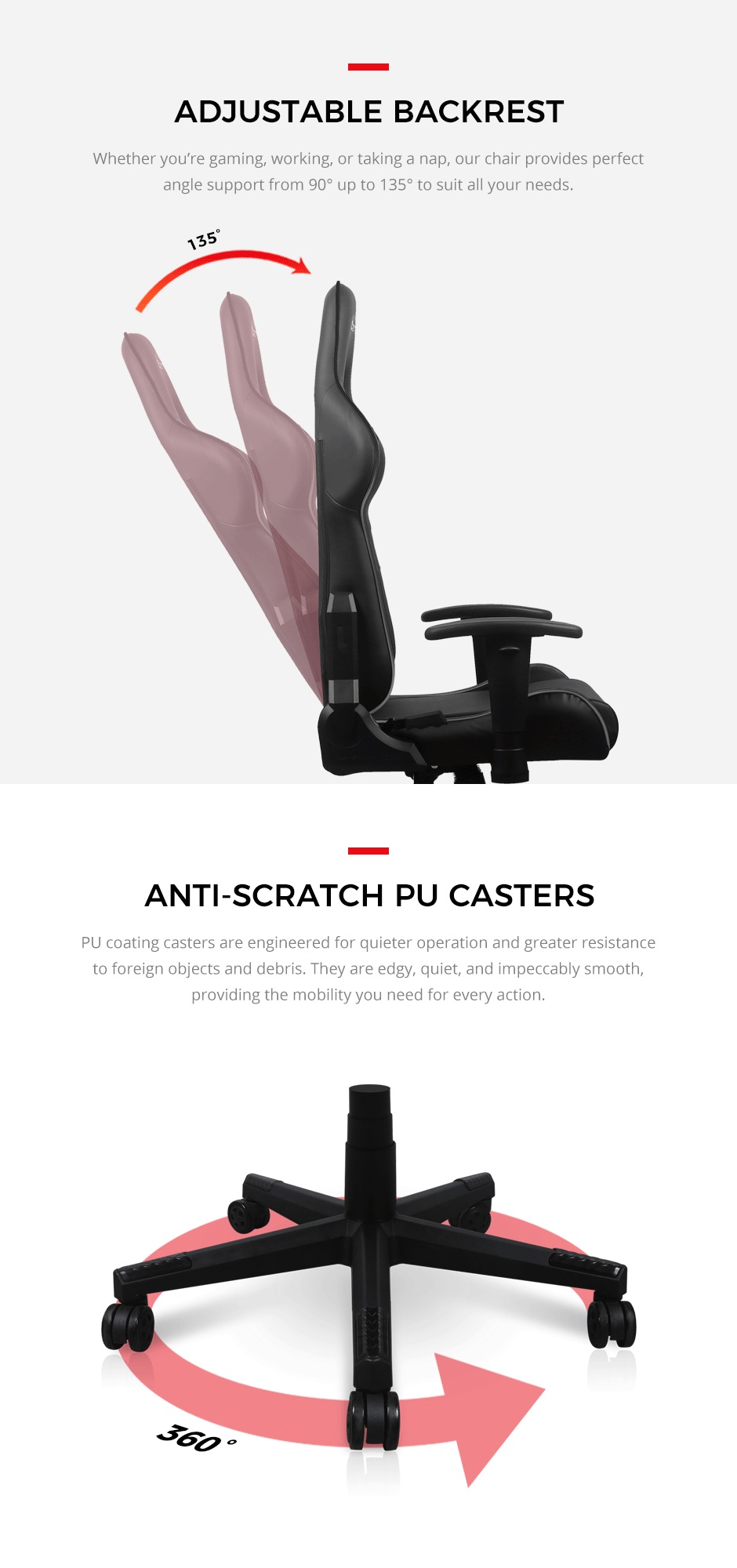 Удобный мягкий подголовник позволяет откинуть голову во время отдыха, и обеспечивает отличную поддержку шейного отдела позвоночника во время работы или игровых сессий.