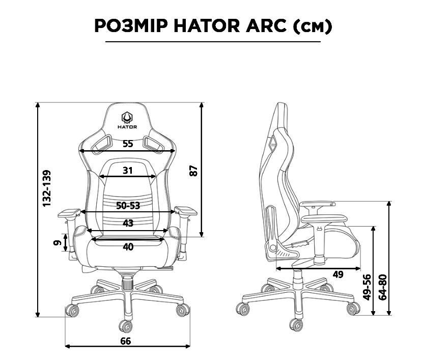 В моделях кресел Hator серии Arc могут комфортно разместиться пользователи, весом до 200 кг.