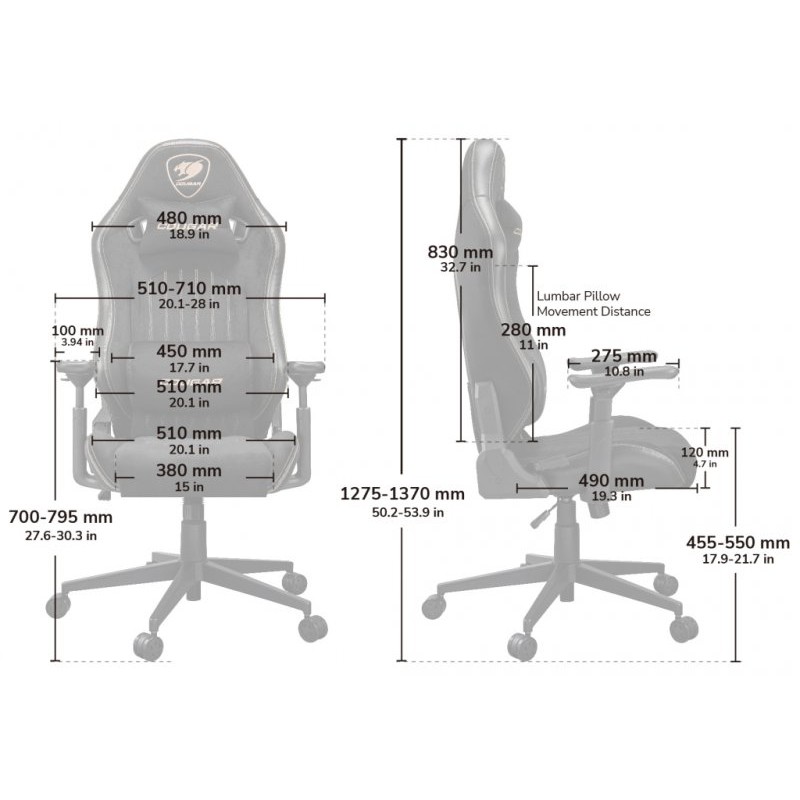COUGAR не экономит на качественных материалах. Дышащая ткань приятна на ощупь и не будет причинять дискомфорт во время долгой игры.Подушка для головы и поясницы