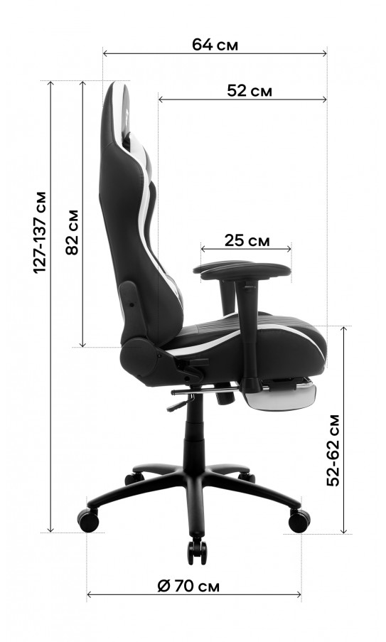 | Дополнительные характеристики | Выдвижная подножка; Регулировка наклона спинки; Регулируемая поддержка поясницы; Регулировка высоты подлокотников; Регулировка высоты сидения. |