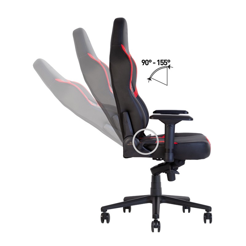 Традиционно для геймерских кресел, спинка Hexter ХR откидывается от 90 до 155 градусов и фиксируется в любом положении при помощи рычага.