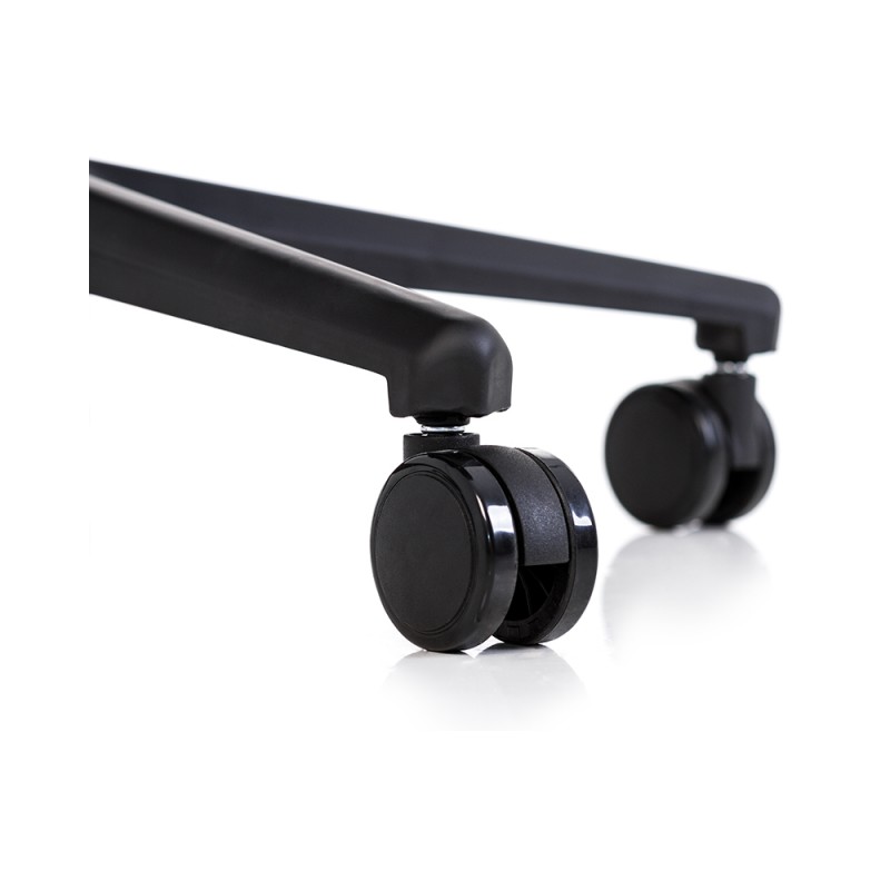 Прорезиненные ролики диаметром 65 мм перемещаются тихо и плавно как паркету, так и по ковровым покрытиям.