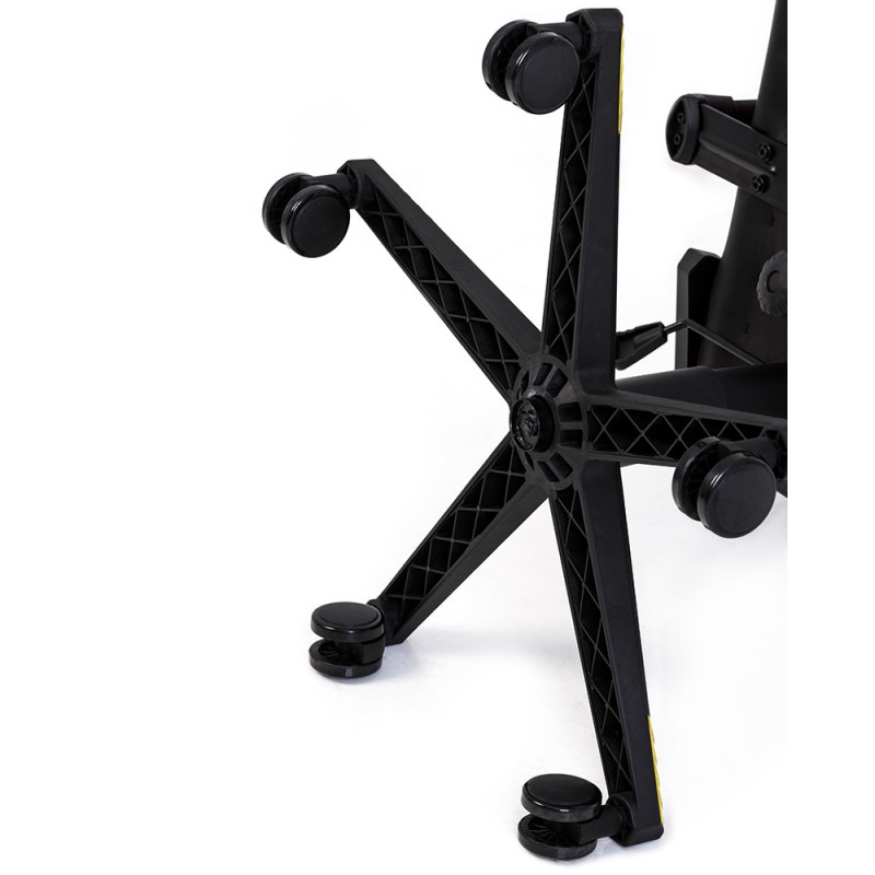 У Hexter ML прочная пластиковая база-пятилучье с рельефными цветными накладками, на которые удобно ставить ноги.