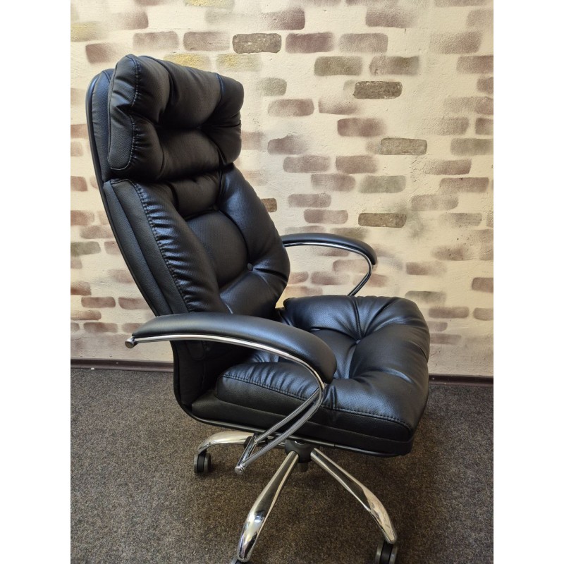 -широкие удобные стальные подлокотники покрытые зеркальным хромом, с мягкими накладками из износостойкого материала NewLeather* из натуральной кожи;