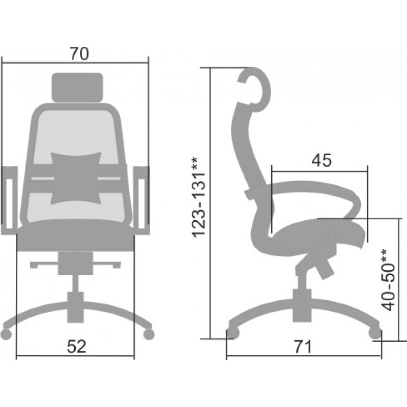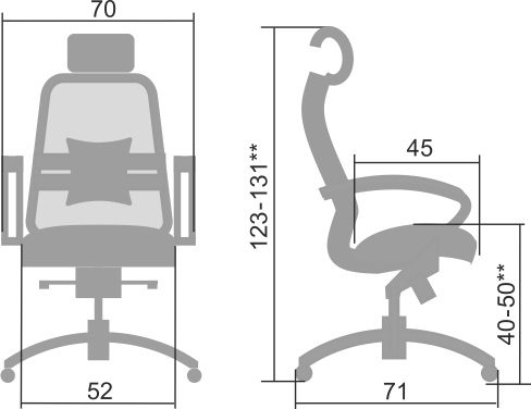 **Высота сиденья в верхнем и нижнем положении может быть изменена, в зависимости от модели применяемого газ-лифта.
