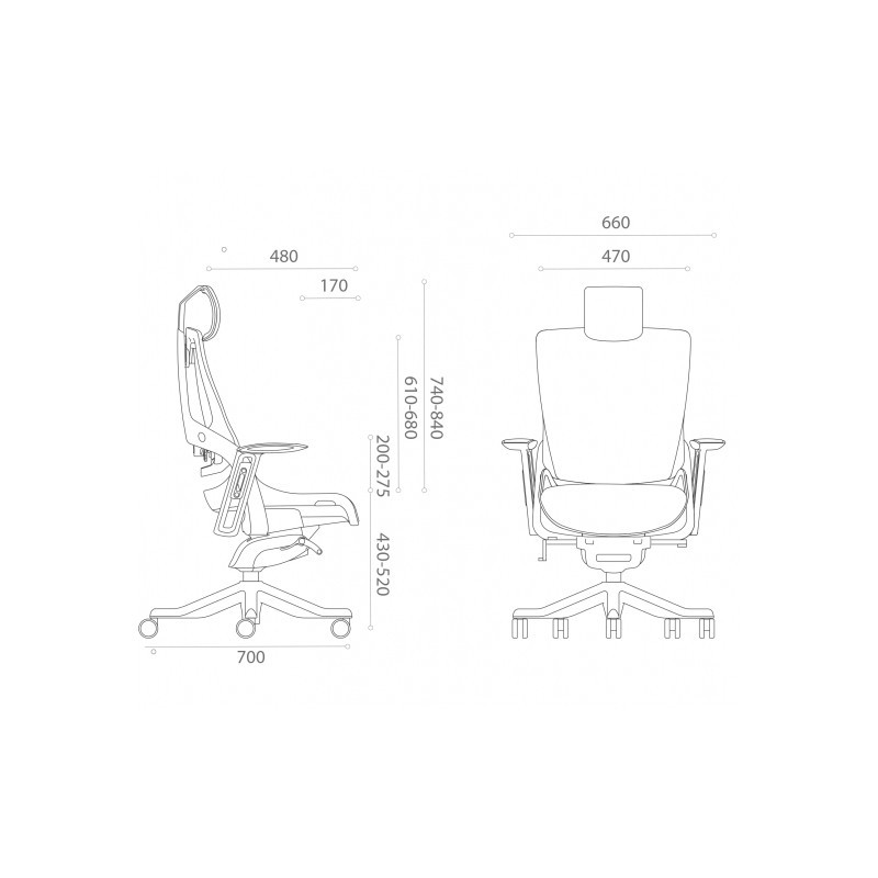 Каркас сиденья, подлокотники, подголовник изготовлены из литого под давлением полипропилена черной внешней рамы и серой внутренней рамы. Вертикальные части подлокотников сделаны из полипропилена с упрочненными волокнами.