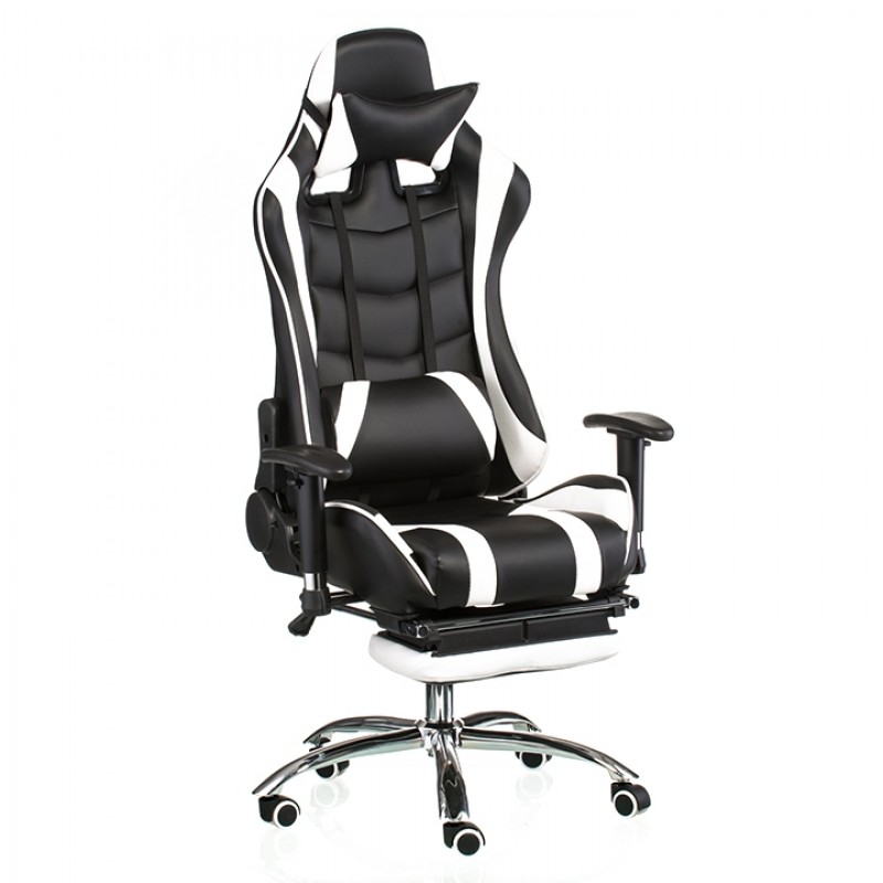 Кресло геймерское Special4You ExtremeRace черное/белое с подставкой для ног