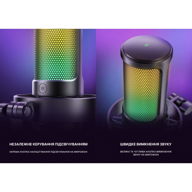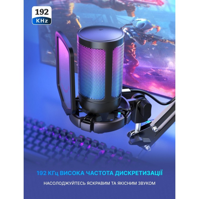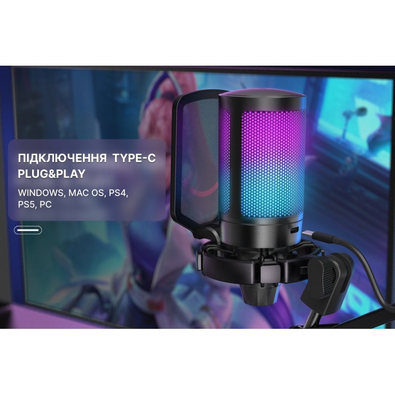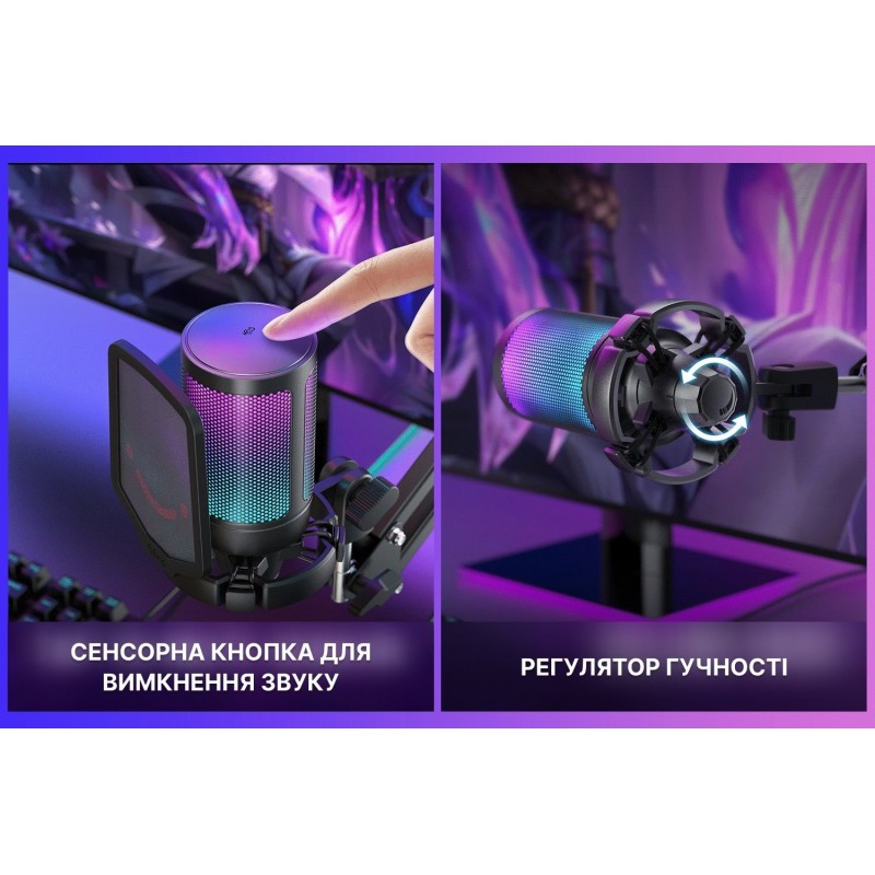 Конец потокового микрофона имеет реверсивный интерфейс Type-C, без проблем подключить правильный путь в полутемной игровой атмосфере. USB-кабель длиной 8.3 фута (2.5 м) достаточно длинный, чтобы протянуть его из-за главного компьютера на рабочий стол для четкой записи игрового звука. Двухцветный автоматический градиент RGB делает ваш микрофон компьютера вишенкой на торте. Благодаря мягким и согласованным световым эффектам ваше игровое видео или прямая трансляция будут еще более привлекательными с помощью микрофона ПК со штангой. Сделайте так, чтобы ваш канал выделялся в списке рейтинга. Если вы просто играете в игры, насыщенный цвет RGB на стримерном микрофоне, который сочетается с вашими переливающимися цветами компьютерных аксессуаров, может удовлетворить потребности в большей игровой атмосфере. Настройка сенсорной кнопки отключения звука вверху можно легко коснуться одной рукой вместо того, чтобы держать микрофон компьютера во время игры, чтобы нажать кнопку. Быстрое отключение звука не повлияет на работу клавиатуры компьютера Macbook, а также на тикающий звук. Большая ручка регулировки громкости в нижней части USB-микрофона облегчает точную настройку, и вы можете регулировать громкость микрофона на штанге по желанию, не отрываясь от игрового экрана.
