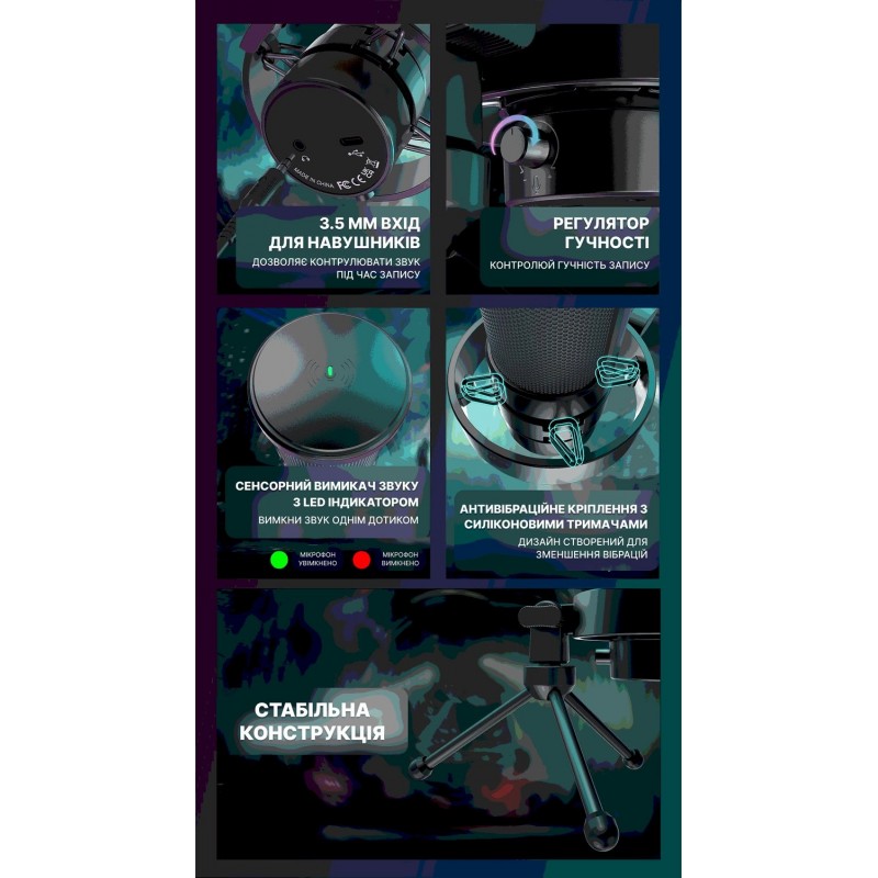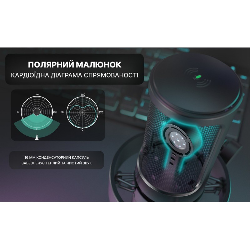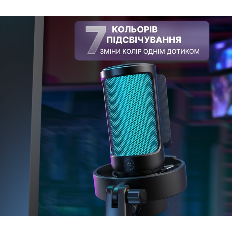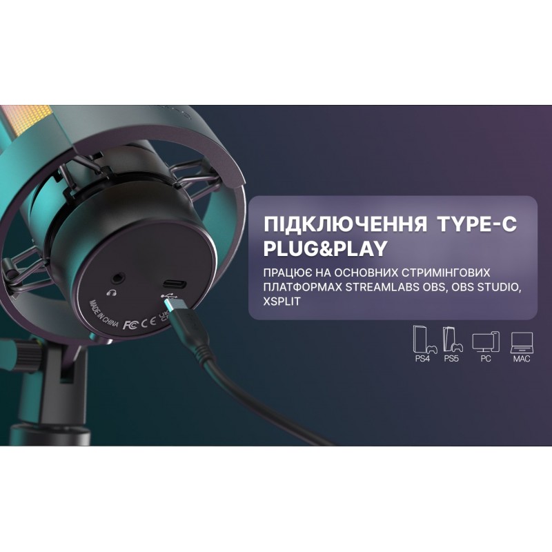 Студийный USB-микрофон FIFINE A8V не нуждается в внешней аудиокарте, работает с Mac, Windows и Sony Playstation. Он отлично подходит для вокала, озвучивания, потоковой речи, видео на YouTube и онлайн-конференций. В комплекте идет удобная антивибрационная подставка-тренога с возможностью регулировать наклон микрофона по вертикали, что позволяет жестко зафиксировать его в нужном положении. Для лучшего качества записи изготовитель рекомендует держать его на расстоянии 10-15 см от источника звука. Со стороны корпуса FIFINE A8V имеется регулятор уровня громкости микрофона. Это позволяет настроить звук в процессе использования, не входя в настройку аудиоустройств. Также сенсорная кнопка выключения микрофона на верхней поверхности микрофона. В комплекте идет поп-фильтр, делающий записываемый звук более чистым и приятным. На нижней части микрофона расположен разъем для подключения микрофона к ПК USB C и JACK3,5 для подключения наушников, позволяющих слышать голос в режиме реального времени. FIFINE A8V имеет кардиоидную диаграмму, исключающую запись посторонних звуков и уменьшающую эхо.