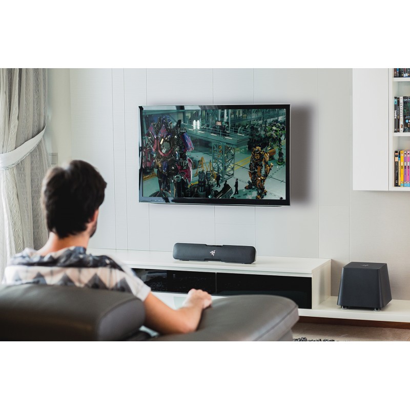 Саундбар Razer Leviathan с 5.1 канальной системой объемного звука легко помещается под любой настольный монитор или игровую приставку. При том, что этот саундбар достаточно универсален и поддерживает возможность частых перестановок, он оснащен самой передовой технологией Dolby®, превосходными динамиками и выделенным сабвуфером для воспроизведения насыщенного звукового сопровождения легендарных игровых баталий или простой передачи ваших любимых мелодий со смартфона.