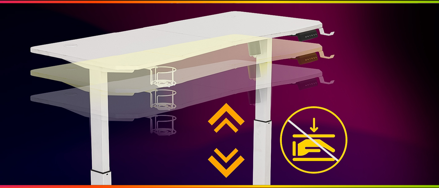 СТІЛ ОБЛАДНАНИЙ ЗАХИСТОМ ВІД ЗАТИСКАННЯ ПРИ РЕГУЛЮВАННІ ВИСОТИ.