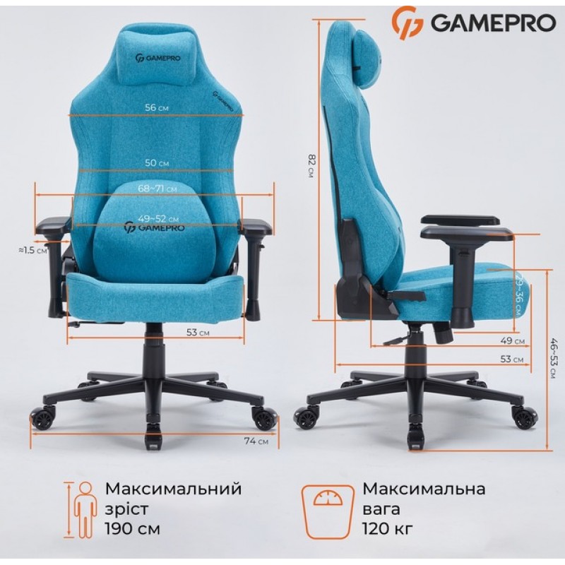 Ігрове крісло Gamepro FGC750LB Size L Fabric Light Blue (Код товару Gamepro FGC750LB Size L Fabric Light Blue)