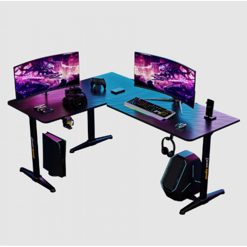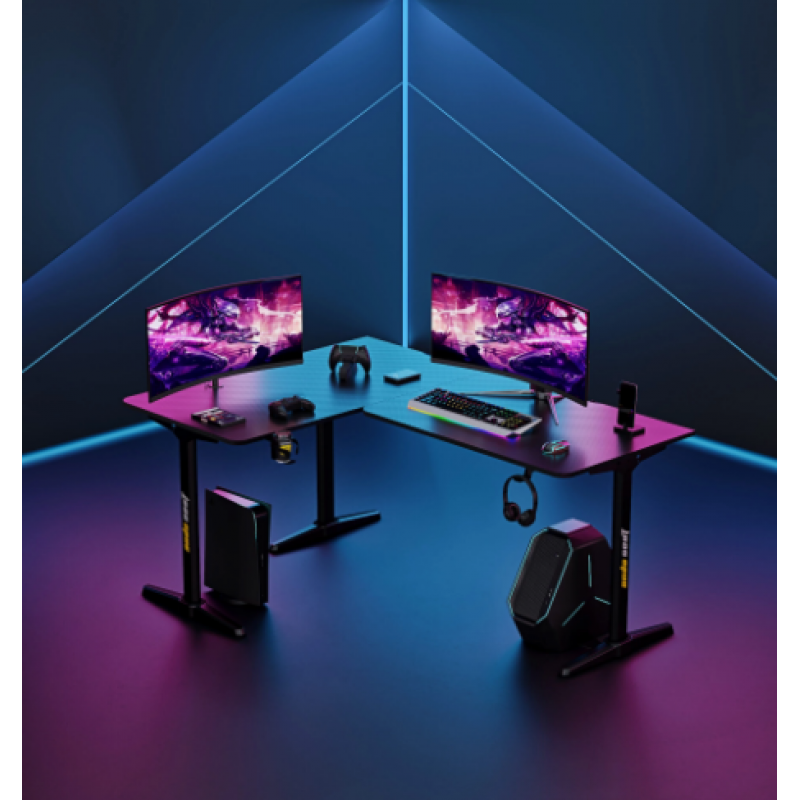 Надзвичайно широкий робочий стіл 160 x 60 см PLU L-подібної форми, ергономічний дизайн вигнутої поверхні, насолоджуйтесь роботою, не притискаючись до живота, насолода від гри та перемога.