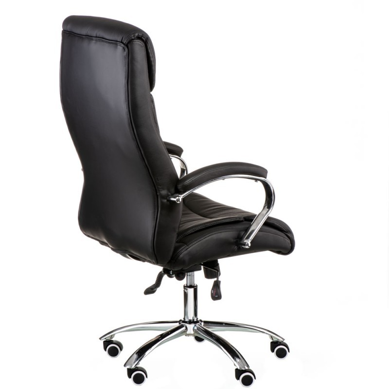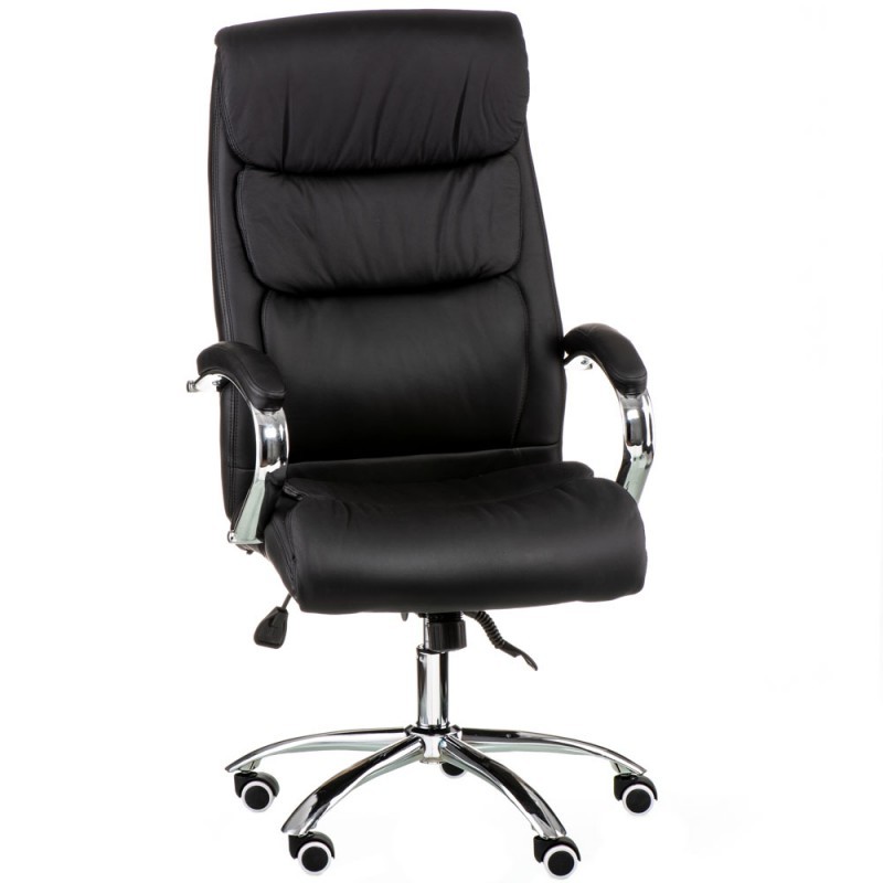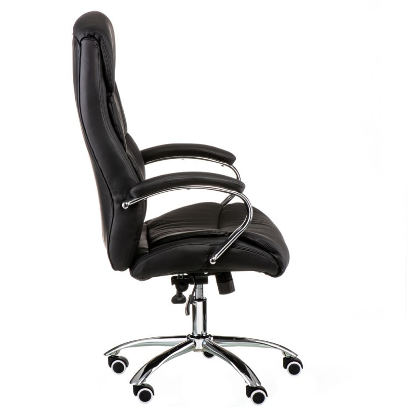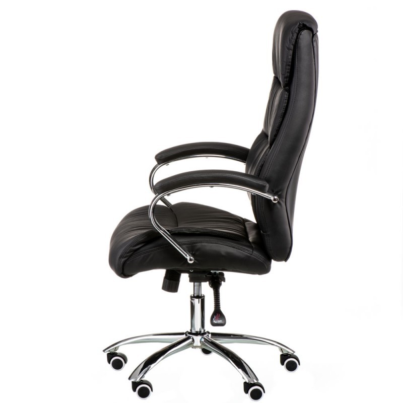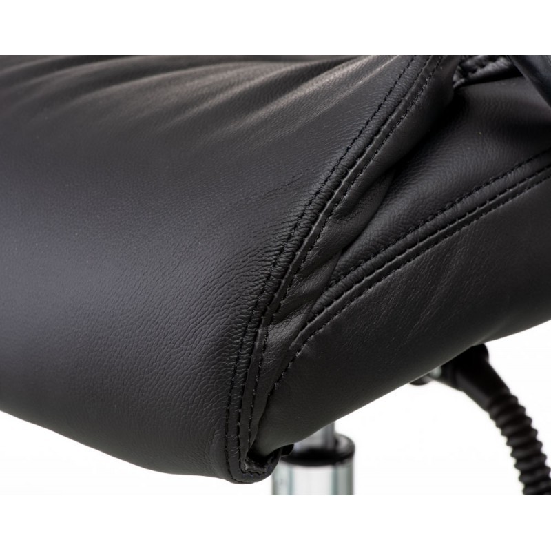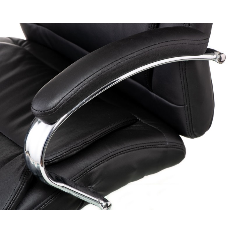 Підлокітники: нерегульовані, матеріал - метал хромований, оббивка - м'яка Високоякісних натуральна шкіра чорного кольору.